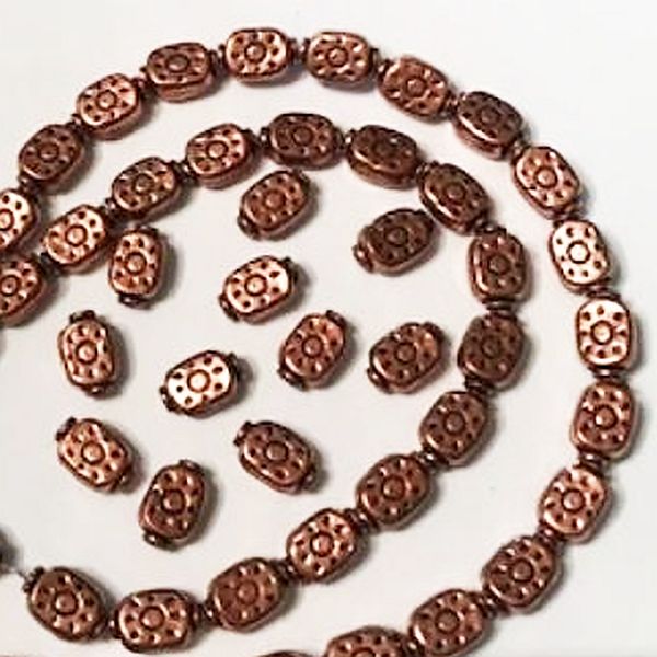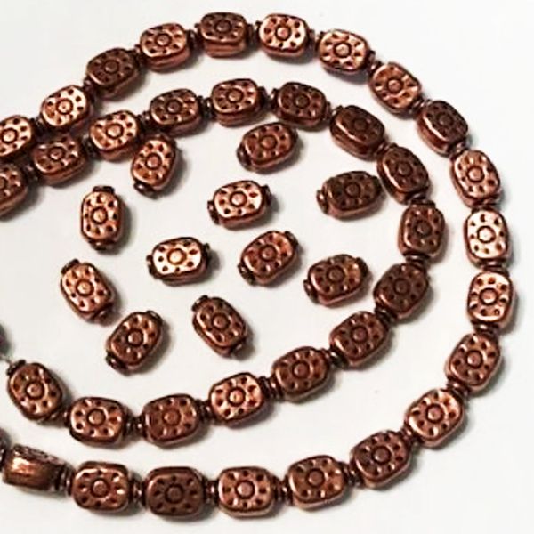 Embossed copper spacer beads, sun or flower design. These wonderful 12mm beads have a lovely patina and are oxidized in the low areas making the design pop!