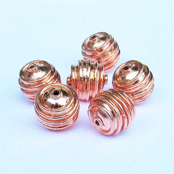 Large 14mm Lined Beehive Copper Beads 4 pcs. GC-368