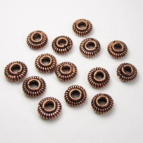 9mm Coiled ring beads with a ring on both ends, genuine copper beads. These large hole beads are perfect for leather and other 2-3mm stringing material.