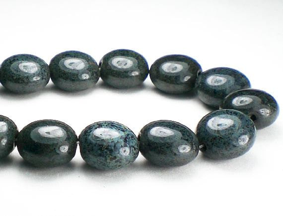 Black opaque lentil beads with a blue mottled all over finish, some beads darker than others. The lentil shape is wonderful for earring, bracelet and necklace designs, just a very versatile and unique bead. Appearing almost a steel blue, very unique and I really love this mix. Since my vendor put his lentils on sale I am pricing mine in line.