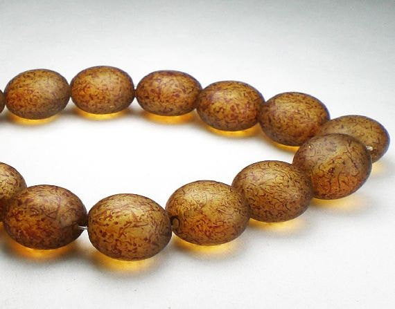 Matte amber translucent lentil beads with a reddish mottled all over finish, The lentil shape is wonderful for earring, bracelet and necklace designs, just a very versatile and useful bead. Since my vendor put his lentils on sale I am pricing mine in line.