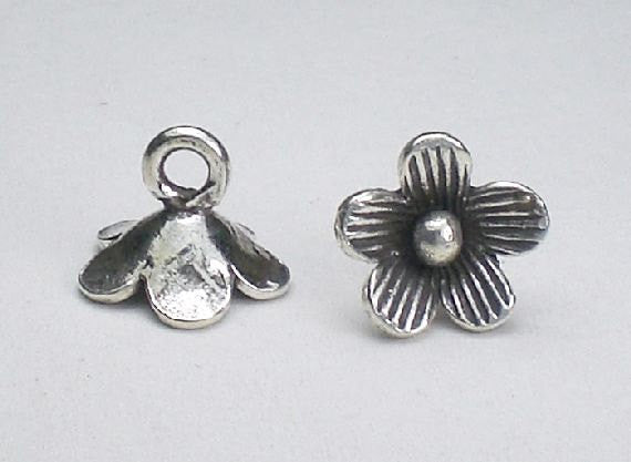 Fine Silver Flower Charms Karen Hill Tribe Charm 10mm 3 pcs. HT-240