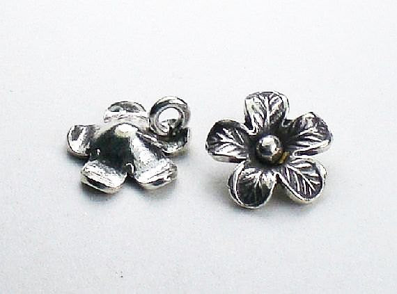 Fine Silver Flower Charms Karen Hill Tribe Charm 11.7mm 2 pcs. HT-229