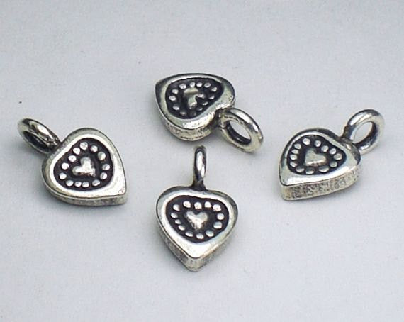 Fine Silver Heart Charms Karen Hill Tribe Thai Silver 4 pcs. HT-203