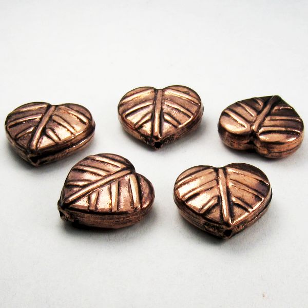 Genuine Copper Heart Shaped Leaf Beads 5 pcs. GC-377