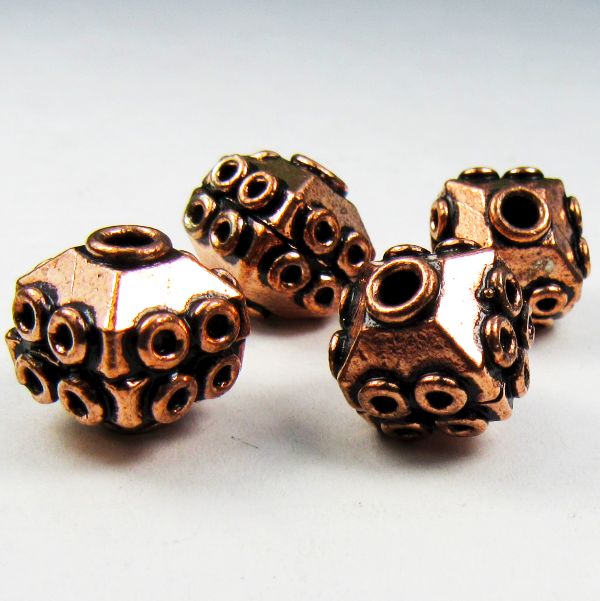 Genuine Copper Large Hole Faceted Bicone Beads 4 pcs. GC-385
