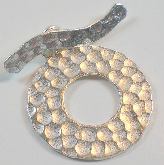 Lovely hammered 16mm round fine silver handmade Karen Hill Tribe clasp. A beautiful design in a secure clasp. The 30mm curved bar completes this design perfectly.