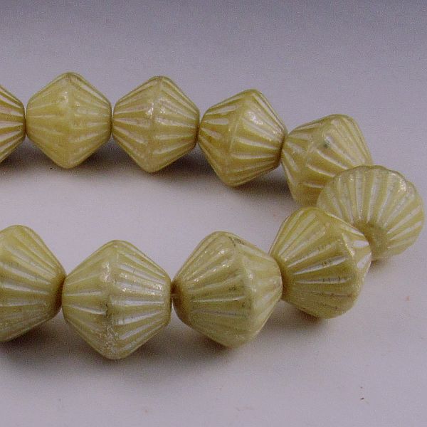 Ivory Fluted Bicone Czech Glass Beads 15 Pcs. B-799