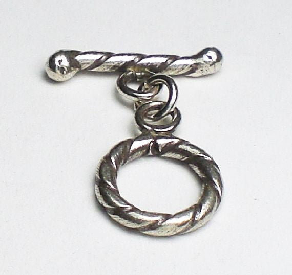 Twisted fine silver toggle clasp, handmade by the Karen Hill Tribe people. Rounded ends on the toggle bar. Small, secure and useful.