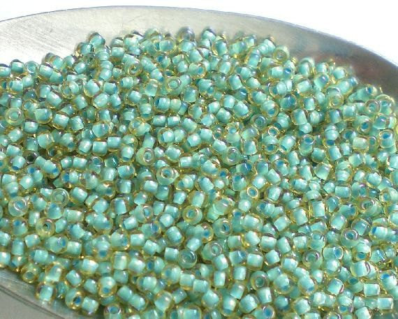 Light Topaz SEAFOAM GREEN Lined TOHO Round 11/0 Japanese Seed Beads 15 grams T400-11