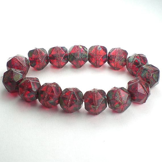 Red English Cut Czech glass beads with a picasso finish. This new shape is superb and comes in so many really great colors.
