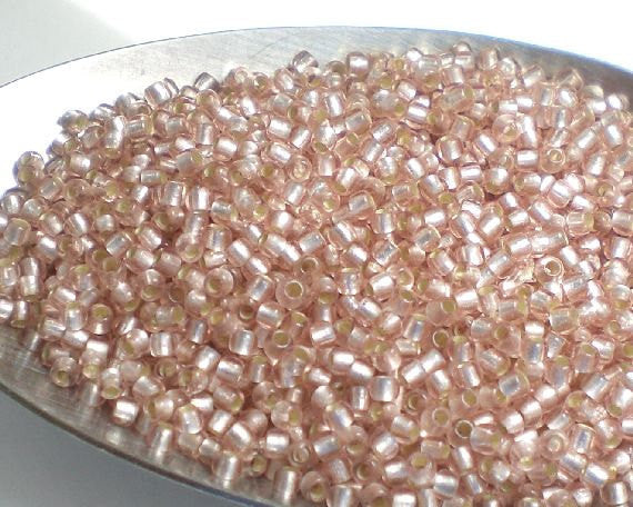 Pink Rosaline Silver Lined Frosted 11/0 Toho seed beads, perfect for bead weaving, spacers, bead work, etc. These 11/0 round rocailles Japanese seed beads are known for their high quality, uniform sizing and larger holes.