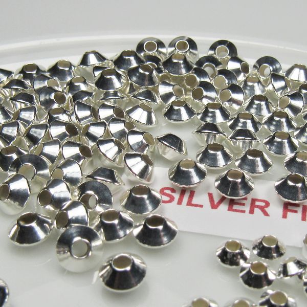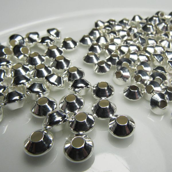 Rombo silver filled bicone beads. These beads are wider than long, excellent for using with larger hole beads such as lampwork, or any time you need a bicone shaped bead. The 6mm size will accommodate your 2mm leather.