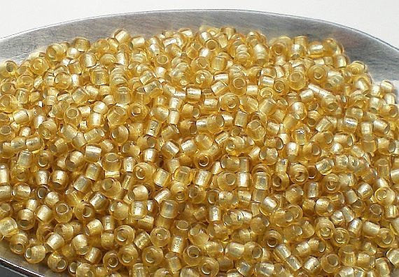Topaz Light Silver Lined Frosted 11/0 Toho seed beads, perfect for bead weaving, spacers, bead work, etc. These 11/0 round rocailles Japanese seed beads are known for their high quality, uniform sizing and larger holes.