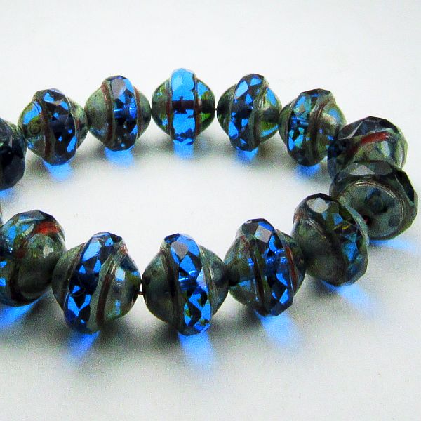 UFO Saturn Sapphire Blue Czech Glass Beads with Picasso 8x10mm 10 Pcs. UFO-470